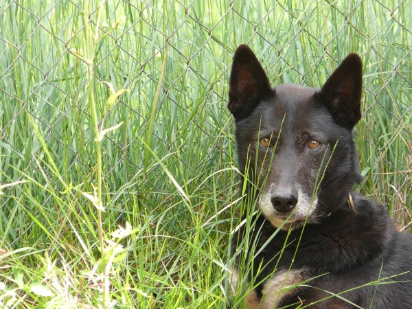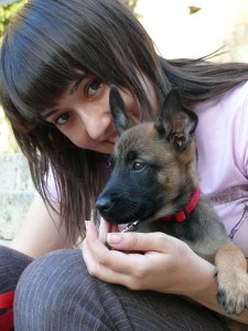 En primer lloc va sortir la Mina, Pastor Alemany de treball de quatre mesos i gossa detectora en formació, que va caminar al meu costat, es va asseure i es va quedar quieta a l’ordre. La situació era complicada: gairebé no vam tenir temps de passejar-la abans, la pista era força petita, feia calor i un munt d’amics de quatre potes treien el cap per sota la tanca així que no la vaig voler forçar i després de jugar una estoneta amb el seu mossegador impregnat de substància la vam tornar al transportí. Una altra experiència positiva que sumem en la socialització de la més jove de la casa!