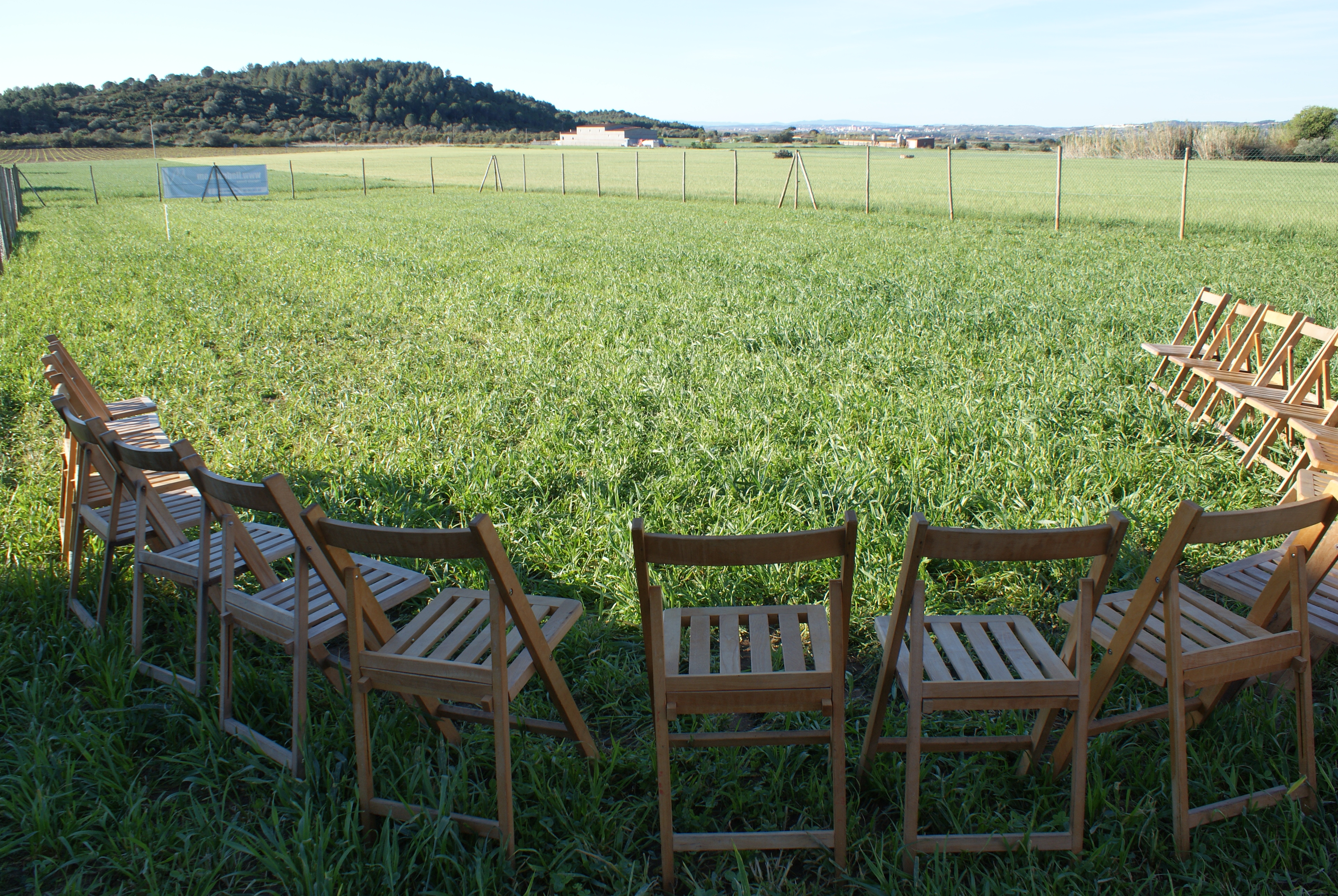 Primer de tot necessitàvem una pista àmplia de gespa, convenientment vallada, amb un fàcil accés i un bon aparcament i per això vam decidir crear-la a Masarac (Alt Empordà), un poblet de poquíssims habitants rodejat de vinyes i oliveres a tan sols nou kilòmetres de Figueres i ben aprop de Peralada. Però també calia un espai ampli a aixopluc per si el temps no acompanyava i per dinar els dos dies. La nostra idea era aprofitar molt bé el temps i sabíem per experiència que fer anar vint persones a un restaurant significava allargar la pausa del migdia més de dues hores per la qual cosa vam decidir oferir nosaltres mateixos els àpats a base de cuina tradicional, al local social del propi Ajuntament. I així és com mares, germanes i fins i tot l’alcalde del poble es van posar “mans a la obra” per oferir una activitat novedosa en un poble on la majoria de gossos són tan rústics que no saben ni asseure’s a la ordre.