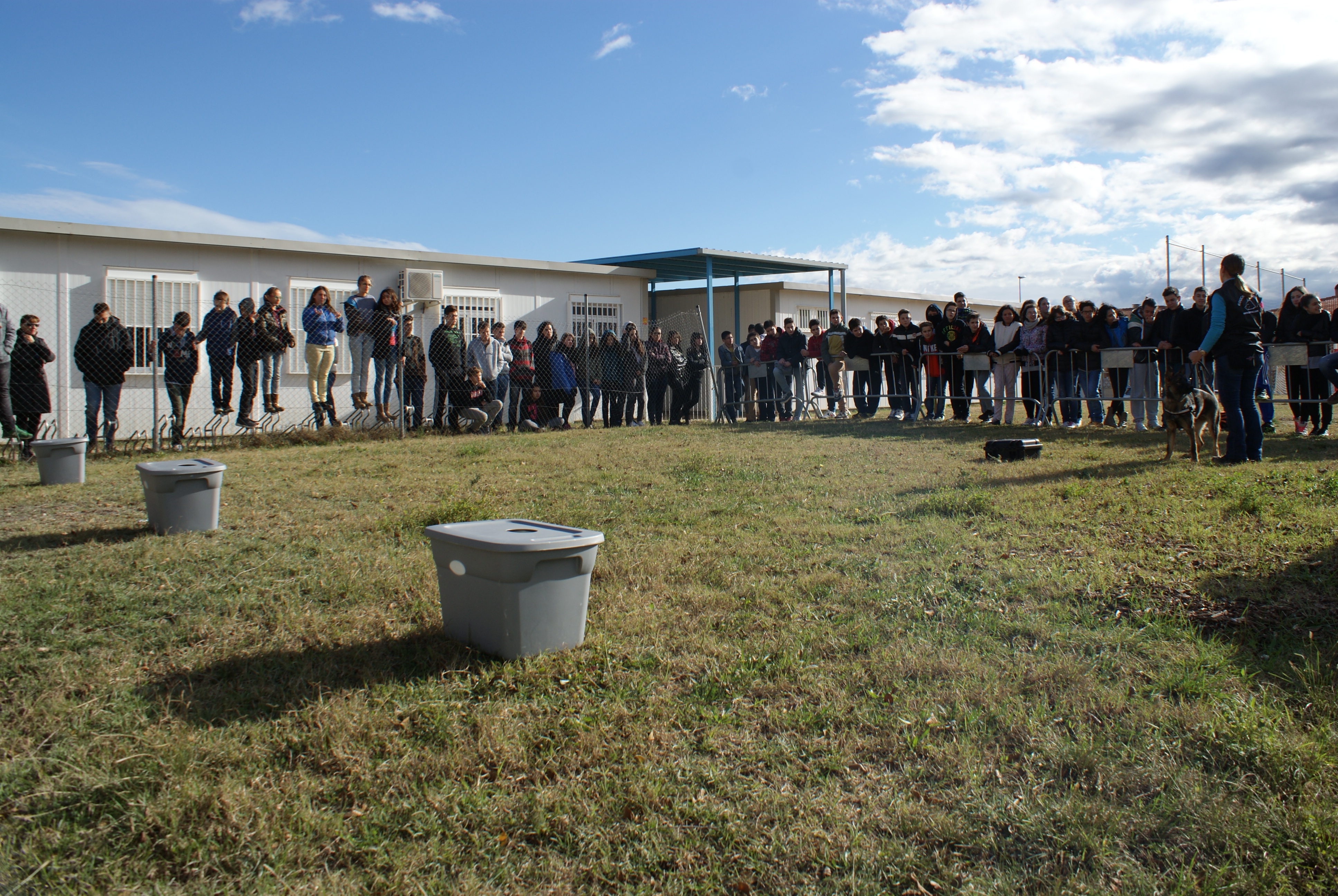 Divendres passat, el dia 5 de Desembre, vam fer una exhibició a l’Institut de Vilafant (Figueres). Com ja us he comentat en posts anteriors, segons la F.A.D i altres organismes, el consum de drogues comença, per desgràcia, cada vegada més aviat. Per aquesta raó els psicòlegs insisteixen que és tan important desenvolupar estratègies de prevenció de la drogodependència des de ben joves i a Lladruc volíem aportar-hi el nostre granet de sorra mostrant la feina que fem amb els nostres gossos detectors.