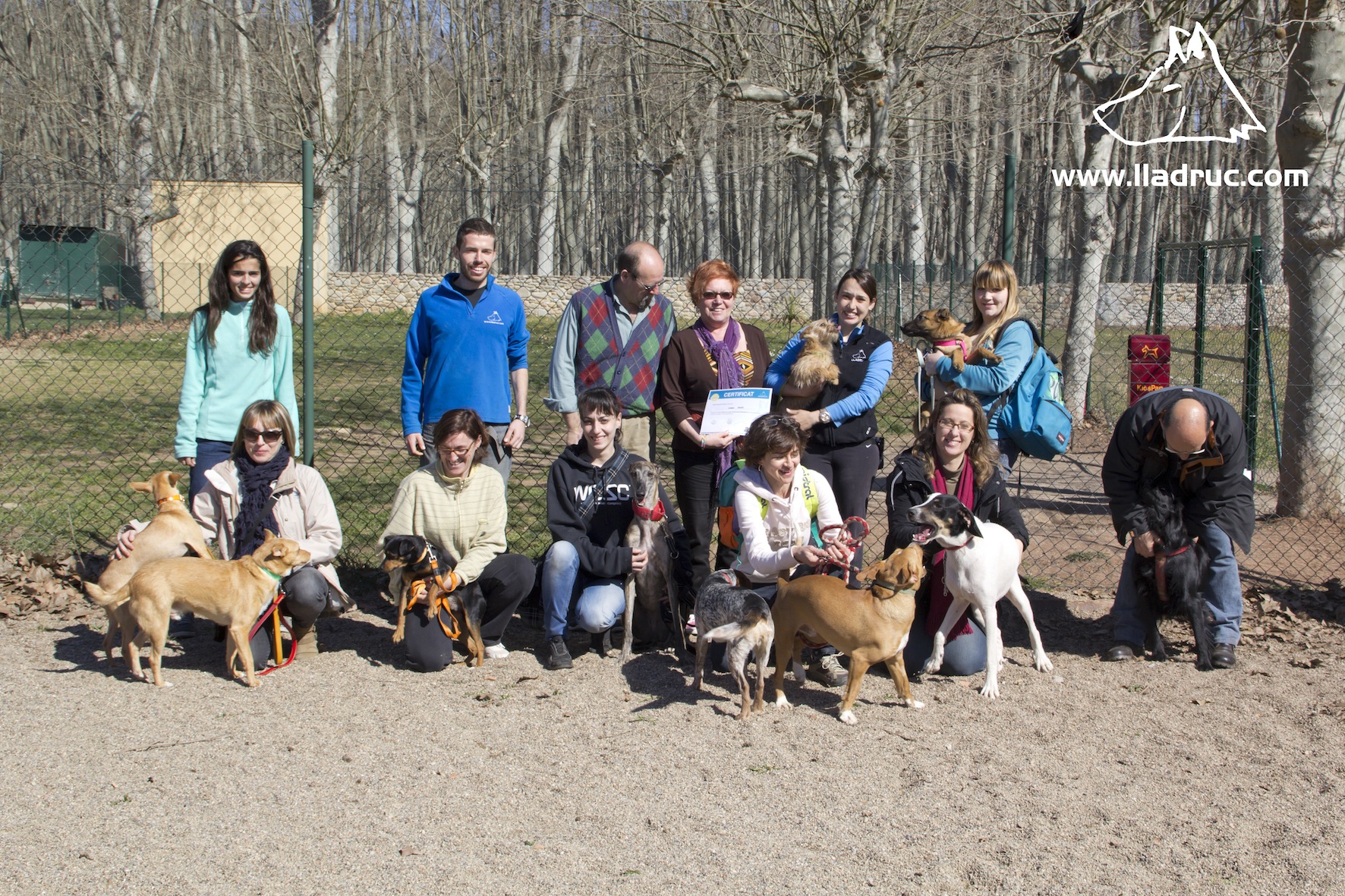A Lladruc sempre procurem fer cursos aptes per a tots els públics i aquesta dotzena edició n’ha estat la prova: hi han participat alumnes de dues potes d’entre vuit i vuitanta anys! El protagonista d’aquesta última xifra ha estat en Carles, que acompanyat de la seva filla Mònica, s’ha esforçat molt en seguir tots els continguts i ha aconseguit acabar el curs fent asseure en Tro i ensenyant-li a passejar sense estirar de la corretja, la qual cosa millorarà la qualitat de vida dels dos!