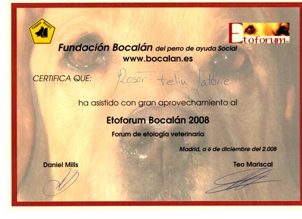 Torno absolutament entusiasmada de l’Etoforum organitzat per Bocalán Madrid aquest dissabte. No m’importen les hores de transport fetes per arribar a Aranjuez (avió, metro, tren de rodalies i taxi), ni la inscripció (110 euros) ni tan sols el fet d’haver pogut dormir només 5 hores perquè realment vaig disfrutar del ponent, Daniel Mills, veterinari i etòleg reconegut a nivell mundial. Ens va parlar d’agressió, comunicació, atenció i percepció canina i ens va donar un munt de consells que penso aplicar a tots i cada un dels meus clients.
