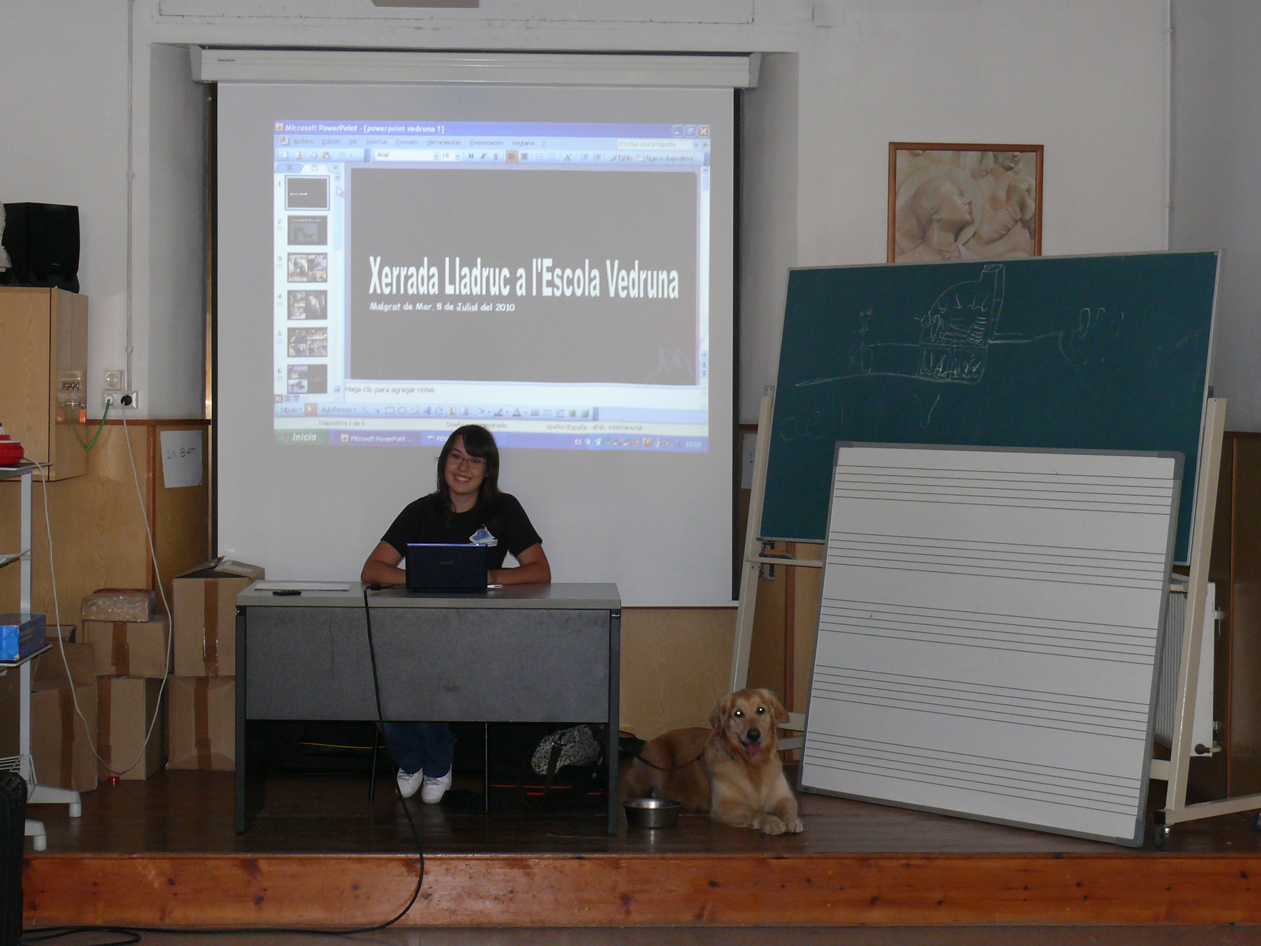 Després la Mònica, la nostra becària, va ensenyar que per manejar una gossa de trenta quilos no cal tenir força bruta sinó un vincle excel·lent i va fer una demostració d’obediència i de recerca de substància amagada dins una caixa de detecció.