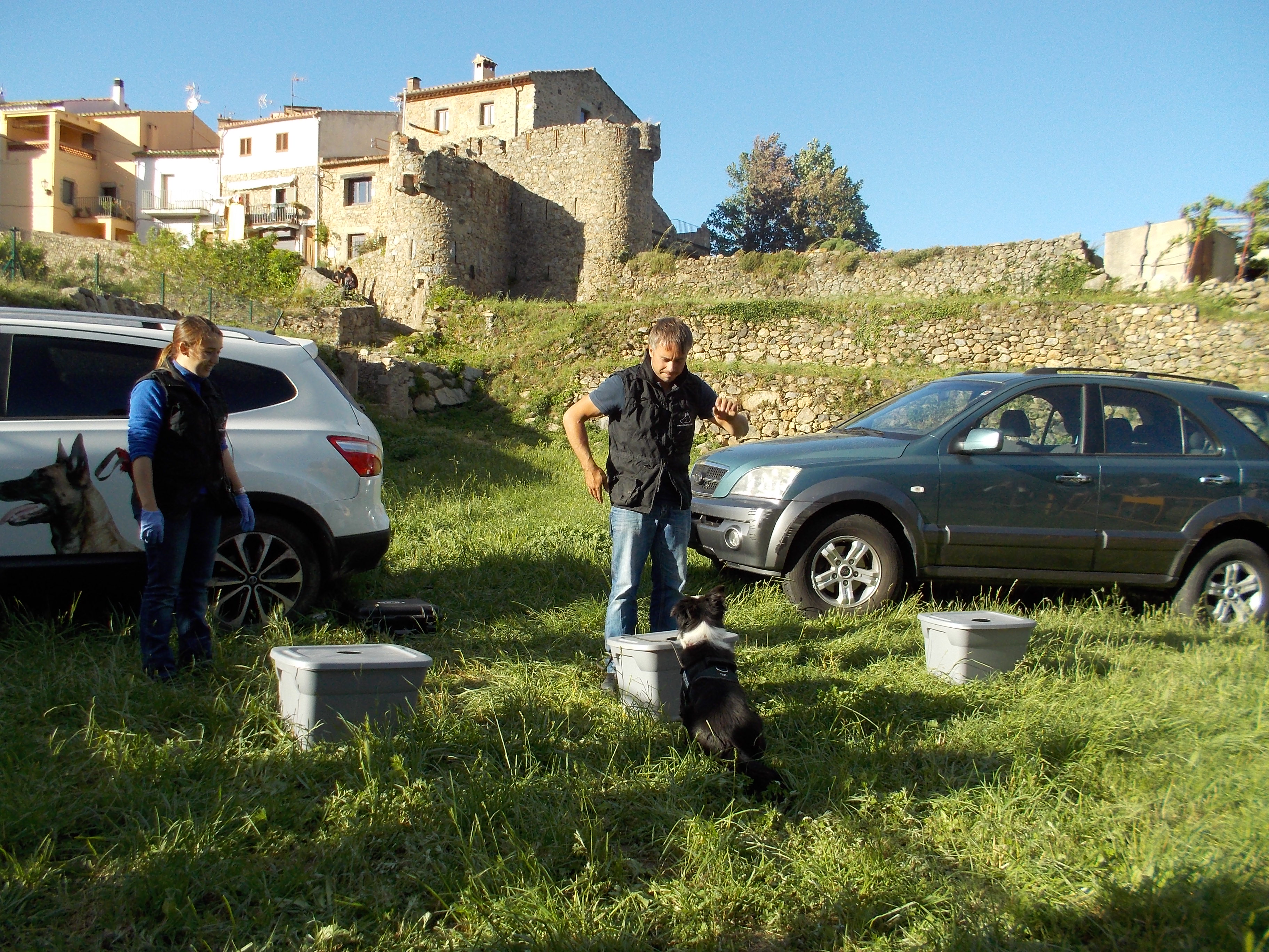 En Bond és fill d’en “Quando Vom Haus Van Hipp” i de la “Wicka Vom Königsbruch”, dos gossos molt potents d’origen alemany que en Marcos, de l’afix gallec “Do Narla”, ha criat i cuidat d’una manera excel·lent a casa seva, amb la seva família. Gràcies a això, en Bond té una immillorable socialització de base, una de les nostres prioritats quan escollim a un cadell que ha d’acabar essent un gos de treball. A partir d’avui aprendrà les ordres d’obediència de base, a controlar la mossegada i a tenir una bona conducta higiènica i ben aviat començarà el seu ensinistrament específic per a convertir-se en un gos detector d’explosius per al projecte que ja vam iniciar fa tres anys i del qual esperem que n’acabi essent protagonista.