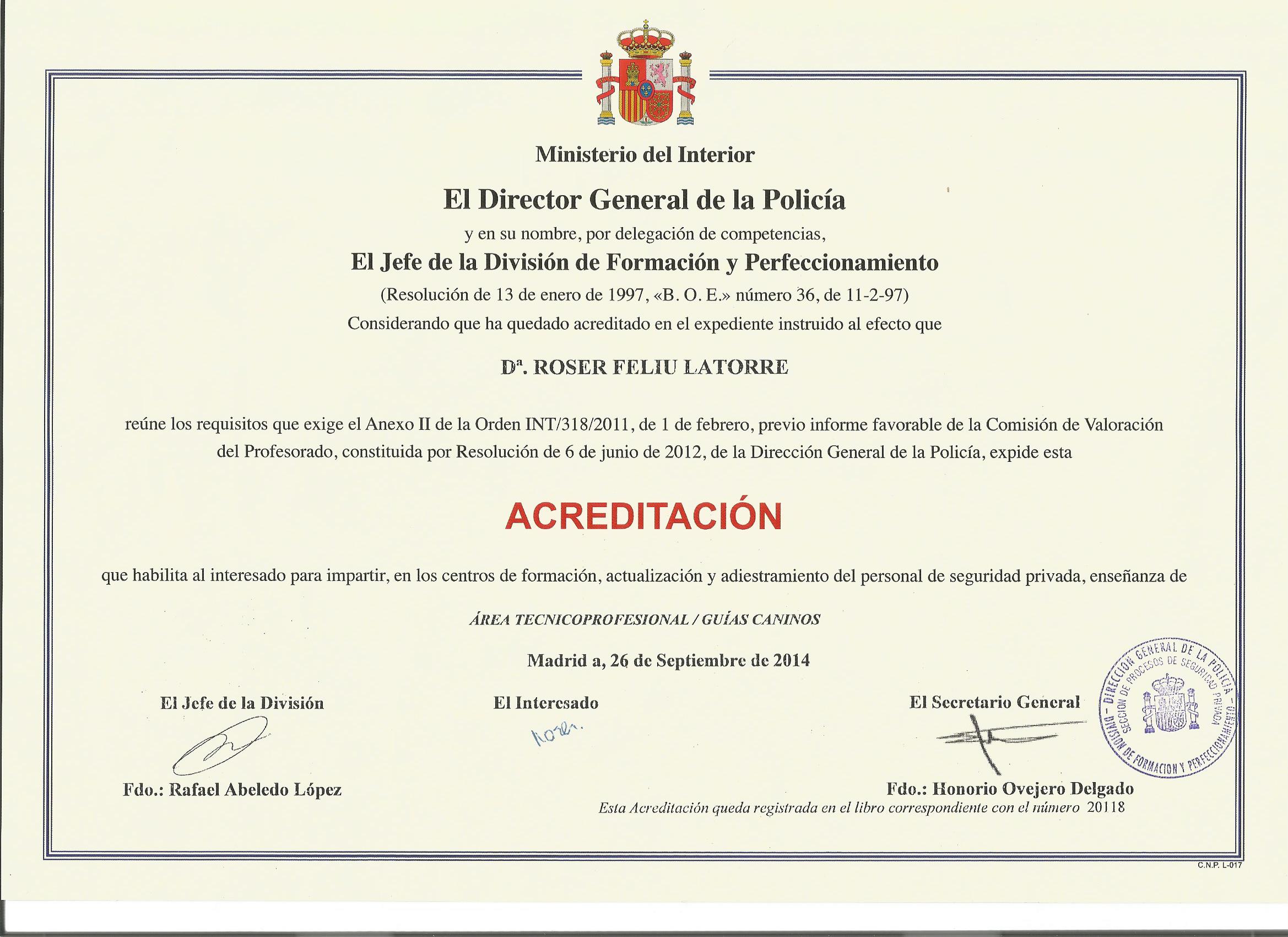 Per sort, però, tot l’esforç va valdre la pena i ara puc dir amb orgull i tot “l’autobombo” del món que sóc la primera ensinistradora de gossos de l’Estat Espanyol habilitada com a Directora de Seguretat i, a més, cap de seguretat i formadora homologada de guies canins.
